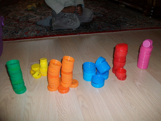 J'ai fabriqué avec deux boîtes de récup(thé, café, lait) un nouveau jeu de tire lire pour les enfants avec les couvercles des pots de bébéc'est une boîte à bouchon avec 1 trous découper aux ciseaux, puis j'ai protégé le tour avec un adhésif .